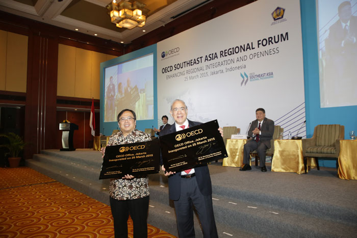 The OECD (Organization for Economic Cooperation and Development) held its Regional Southeast Asia Forum at Hotel Borobudur Jakarta on 24-26 March 2015, attended by 250 delegates from 31 countries and 13 world finance organizations. Officially opened by the Indonesian Minister for Finance, Dr. Bambang Brodjonegoro and chaired by the OECD Secretary General Mr. Angel Gurri?a, the forum discussed two main topics, economic development and educational progress in Southeast Asia. At the same time, the OECD opened its office in Jakarta this year following the opening of its office in Tokyo a few years ago with the purpose of strengthening OECD cooperation with Indonesia and other countries in Southeast Asia and also of following the OECD's commitment to strengthen cooperation with Indonesia. Indonesia is a key partner of the OECD together with India, Brazil, South Africa and China. Also present as one of the speakers at the forum was the Indonesian Minister for Education and Culture, Dr. Anies Baswedan.